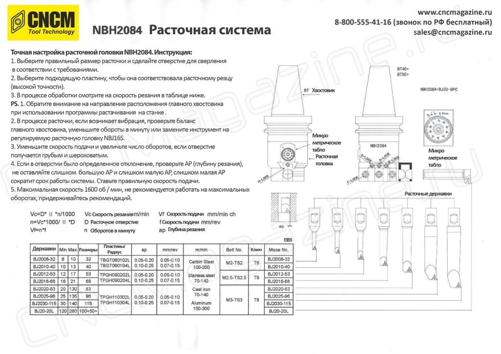 Все элементы набора можно приобрести отдельно. Инструкция к расточной системе NBH2084 во вкладке Документация, справа от описания товара.